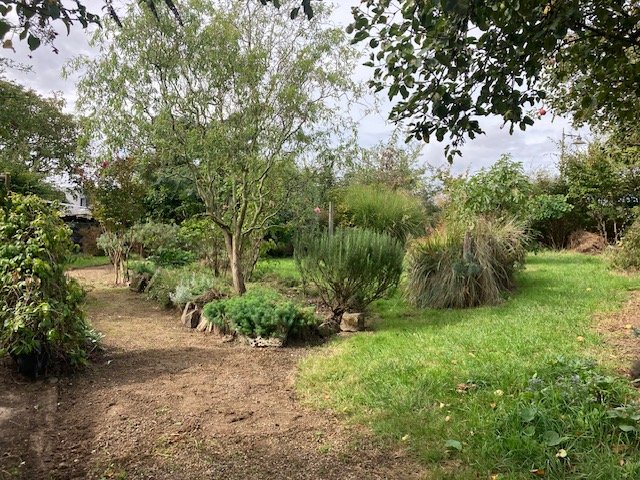On voit désormais à travers certaines arbres dont on a dégagé la base ou les côtés. Cela donne de la profondeur à ce petit jardin.
